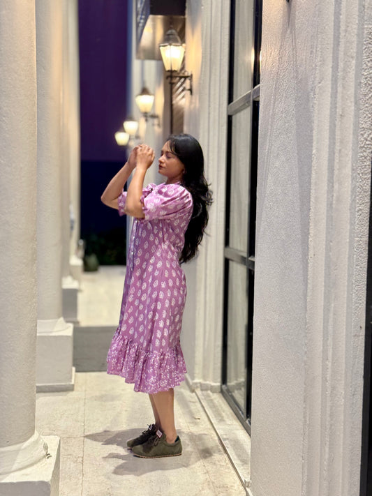 Lilac Handblock Printed Dress
